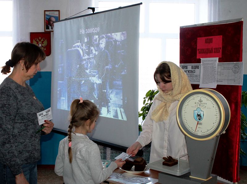 26 января в нашей школе прошла Акция памяти «Блокадный хлеб». Цель Акции - напоминание о мужестве и стойкости мирных жителей Ленинграда в годы Великой Отечественной войны. Обучающиеся школы подготовили и провели акцию о блокаде Ленинграда, о подвиге жителей города, об учебе детей и помощи в защите города. Школьники узнали, что норма выдачи хлеба в то голодное время была очень маленькой и составляла всего 250 граммов на работающего и 125 граммов на остальных. Маленький кусочек хлеба выпекался из примесей жмыхов, овсяной муки и целлюлозы, получаемой из древесины, в него добавляли хвою и коревую муку. Хлеб был горьковатым на вкус, но именно он был надеждой на жизнь в ту тяжелую военную пору. Рассматривая маленький кусочек черного хлеба, ребята удивлялись стойкости и силе духа нашего народа.