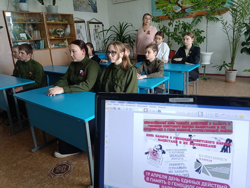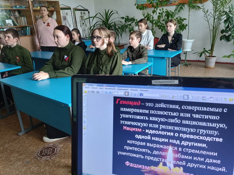 Эта памятная дата отмечается 19 апреля — именно в этот день в 1943 году был издан указ о наказании фашистских преступников и их пособников, а также впервые официально признаны факты массового уничтожения мирных жителей на оккупированных территориях СССР. Ребята узнали, что в годы войны миллионы советских граждан — женщины, дети, старики — стали жертвами чудовищных преступлений: расстрелов, концлагерей, блокад и массовых казней. Мы обсудили, почему так важно помнить об этих трагических страницах истории, чтобы не допустить их повторения и сохранить правду о подвиге и страданиях нашего народа.В ходе беседы школьники делились впечатлениями, задавали вопросы и пришли к выводу: память о жертвах геноцида — это не только дань уважения прошлому, но и наш общий долг перед будущими поколениями. Мы обязаны беречь историческую правду и передавать её дальше, чтобы мир знал и помнил, какой ценой была завоевана Победа