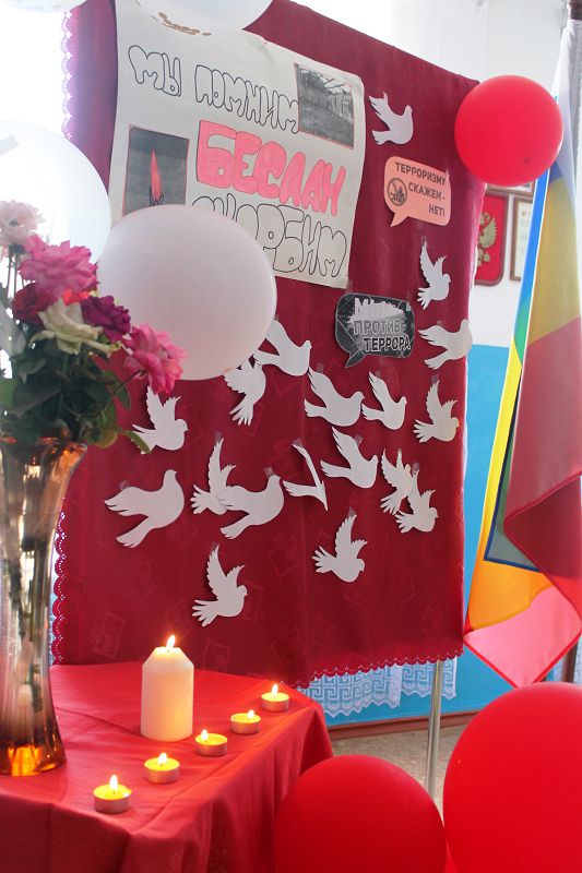 В рамках Дня солидарности в борьбе с терроризмом в нашей школе прошел митинг памяти, который не оставил ребят равнодушными. Хроника о трагических событиях в Беслане вызвала слезы сопереживания у детей и педагогов, а удары метронома минуты молчания эхом боли отозвались в сердце каждого