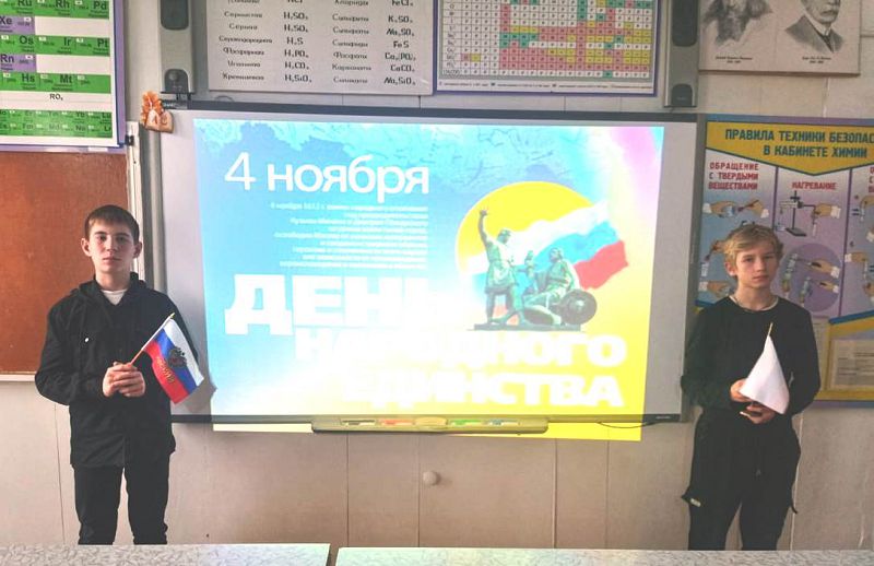 С учащимися 6 класса Луговского филиала был проведен урок – презентация «Мы вместе сильны! Мы едины!» Ребятам рассказали об истории возникновения праздника День народного единства, о подвигах народа, провели беседу на тему мужества и чести. Была просмотрена презентация о героях народного ополчения — Д. Пожарском и К. Минине, о Смутном времени.