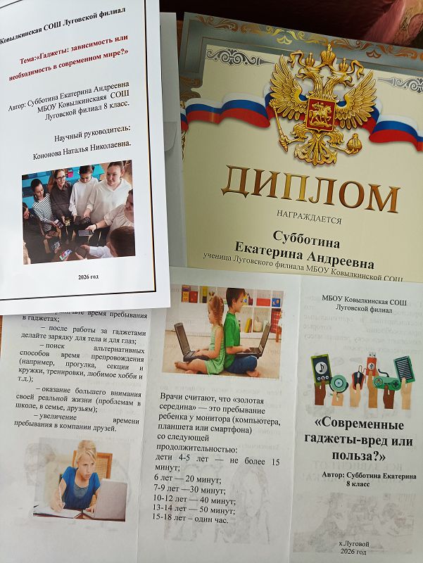 Обучающиеся Луговского филиала приняли участие в районном Дне науки. Субботина Екатерина представила на суд жюри исследовательскую работу по теме «Современные гаджеты – вред или польза?», Холодова Маргарита «Костюм донской казачки сквозь века».